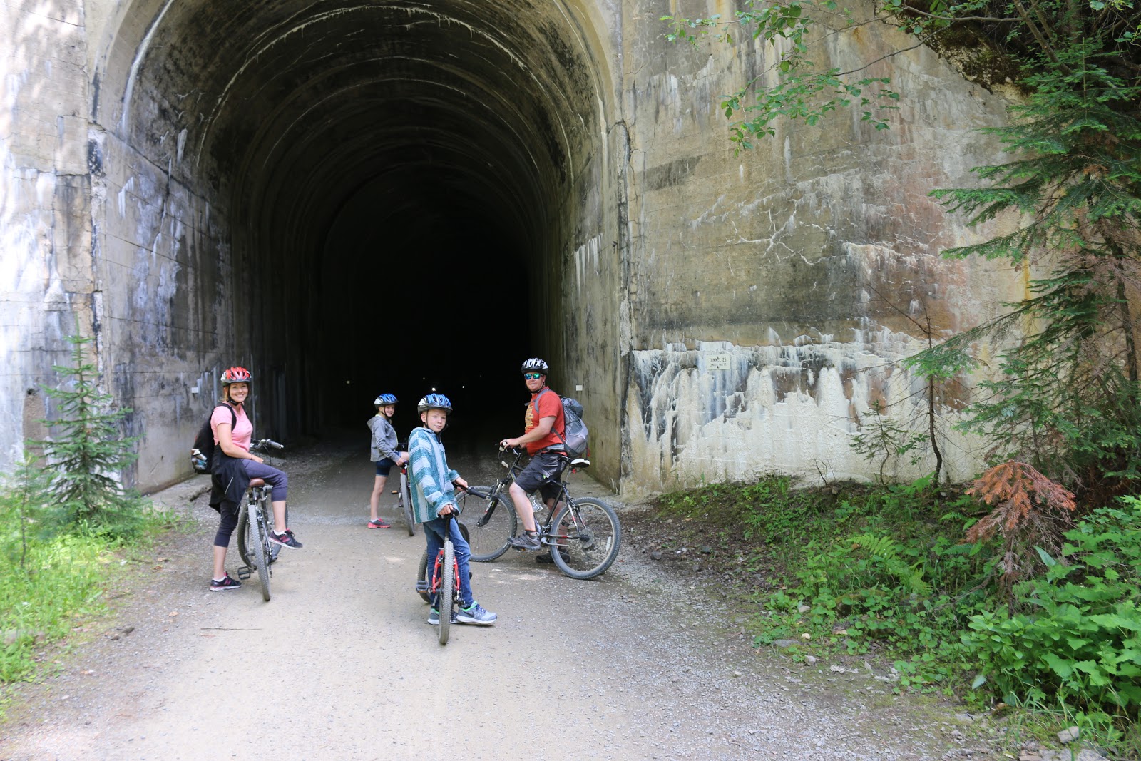 After church we continued east to our next destination: the Hiawatha Trail. This is another bucket list item that we've been wanting to do for years. We don't make it up to northwestern Montana very often (cough...ever) though, so I didn't think we'd ever really get a chance to ride the famous trail. The Hiawatha Trail was once an old railroad, which was converted to a bike trail after trains no longer used it. It meanders through tunnels and over bridges that span pristine Montana mountainsides. Wildflowers grow spontaneously on the sides of the trail, which is an easy gentle decline the entire way. It was so easy that after 7-10 miles I kinda wished were riding back up it at the end instead of having a shuttle pick us up. And the weather was gorgeous! We stopped a lot to take in the view and read the historical information displayed on plaques along the way.